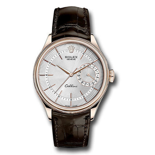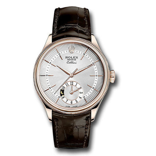 39mm 18K Everose gold case, flared screw-down crown with Rolex emblem, double domed and fluted...