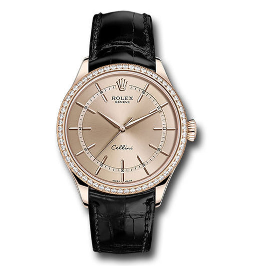 39mm 18K Everose case, flared screw-down crown with Rolex emblem, bezel set with 62 diamonds,...