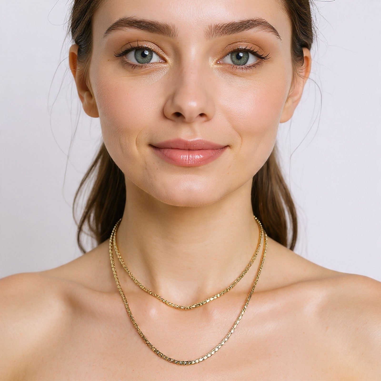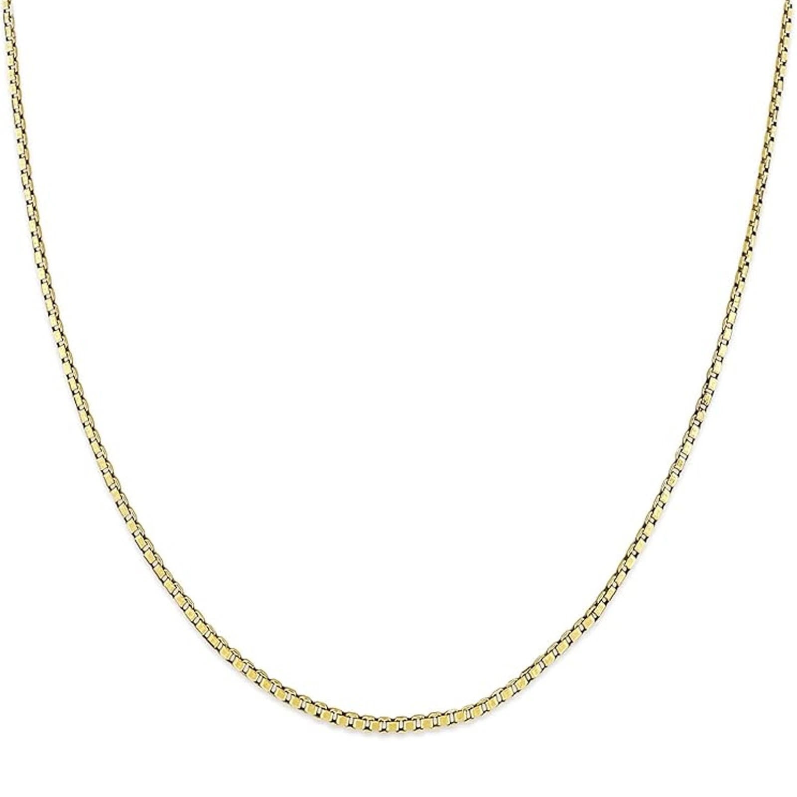 - SECURE CLASP: Renowned for its strength and lustrous finish, the box link chain combines elegance with durability. It features a spring ring clasp for secure and reliable fastening. Designed with more gold per inch than most other chain styles, it strikes the perfect balance between a delicate appearance and lasting sturdiness for everyday wear.